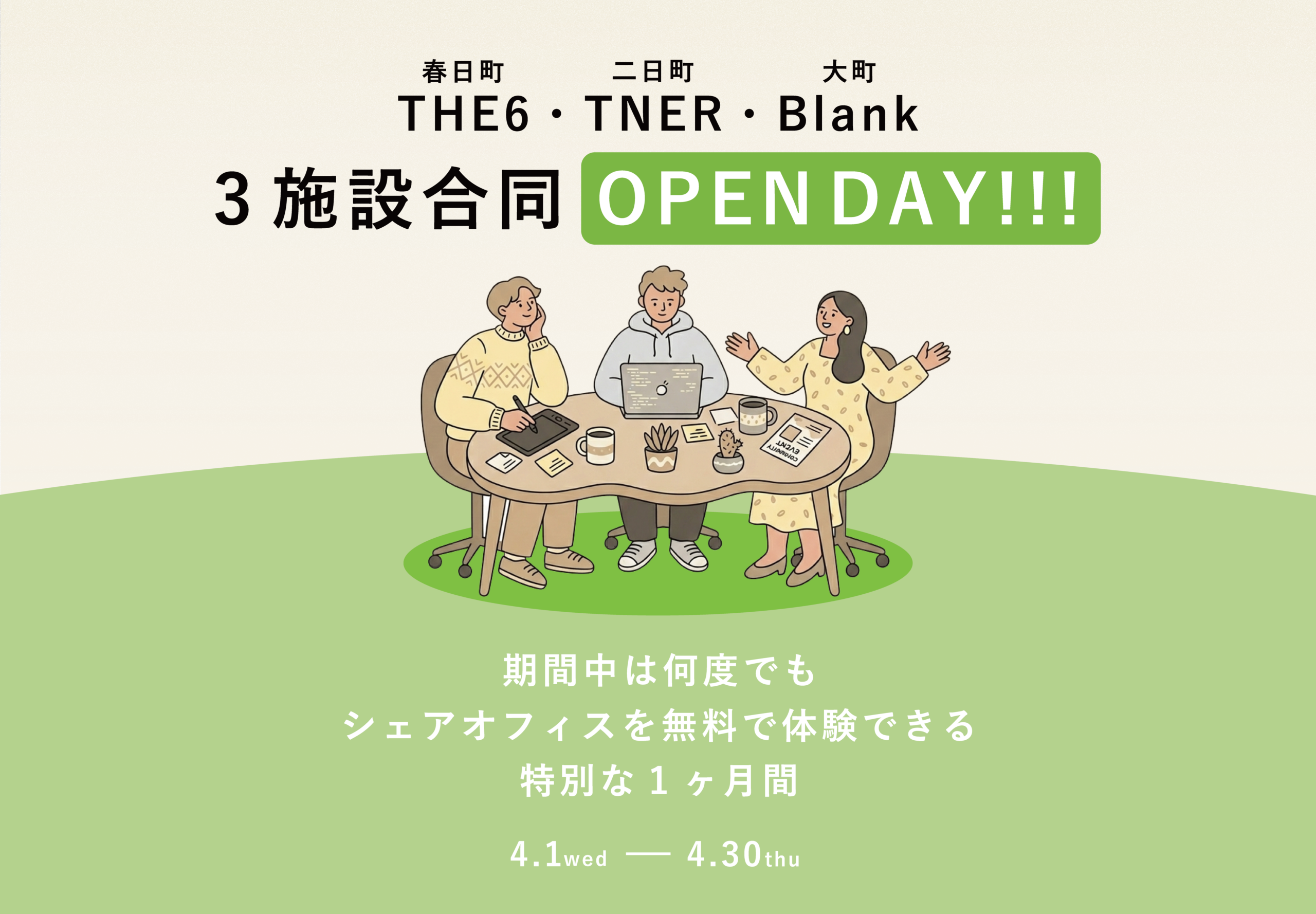 そこで今回は、シェアオフィス「THE6」「TNER」「Blank」の3施設が